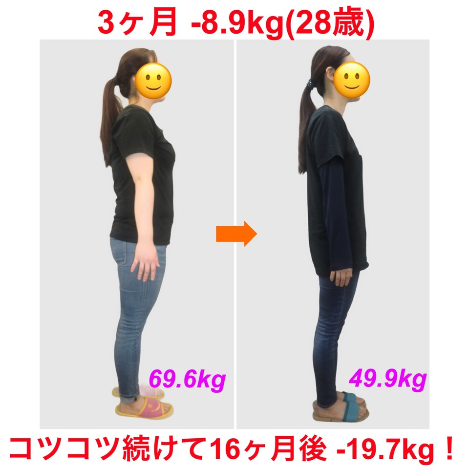 【体重】 69.6㎏ → 49.9㎏(-19.7㎏)
